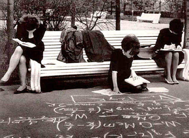 Estudiantes universitarias soviéticas en un parque de Moscú (c. 1960)
