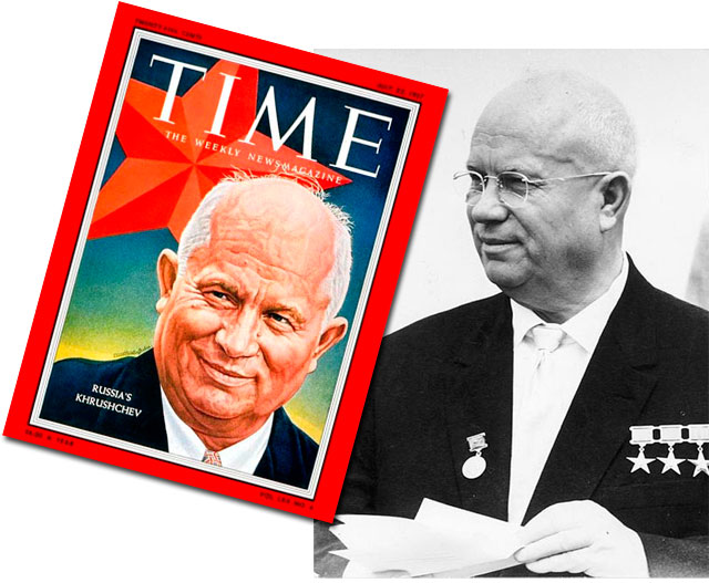 Nikita Jruschov, tres veces Héroe de la Unión Soviética (las tres estrellas fijadas del lado izquierdo de su chaqueta), protagonizó varias portadas de la revista norteamericana ‘Time’ durante su mandato como secretario general del PCUS entre 1953 y 1964.