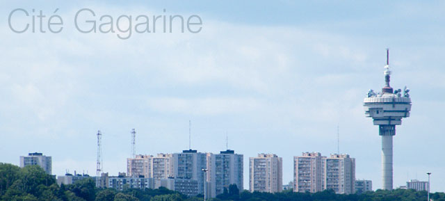 Cité Gagarine —en la panorámica superior, en la que también podemos ver la ‘Tour Youri Gagarine’ de comunicaciones a la derecha— es un barrio de clase obrera situado al Este de París (Drancy, Seine-Saint Denis), inmerso en el llamado «cinturón rojo» de la gran conurbación capitalina francesa. Una de las peculiaridades de la Cité Gagarine, además de sus acendradas tradiciones «cromáticas», es que quizá se trate de la única zona urbana del planeta que tiene dedicados todos los nombres de sus calles a cosmonautas y astronautas, especialmente soviéticos y franceses pero también estadounidenses: Popovitch, Carpenter, Glenn, Nicolaiev, Chrétien, Haignère, Sedov, Tereshkova, Alameda de los cosmonautas, la ‘Avenue Youri Gagarine’ (por supuesto)… Además, buena parte de su mobiliario urbano está decorado con motivos muy especiales… y espaciales, como podemos ver en el siguiente vídeo; un auténtico ‘tour’ cosmonáutico por las calles de ‘Cité Gagarine’, al Este de París…